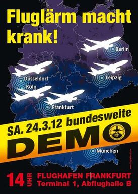 Nächste Woche beginnt beim Bundesverwaltungsgericht in Leibzig die Verhandlung über das Nachtflugverbot. Daher wollen wir vorher noch einmal Flagge zeigen und uns am 12. März an der Montagsdemo am Frankfurter Flughafen beteiligen (Beginn: immer 18 Uhr). Wir wollen Fahrgemeinschaften bilden und gemeinsam fahren, dazu treffen wir uns schon um 17.00 Uhr am Ramonchamp-Platz.